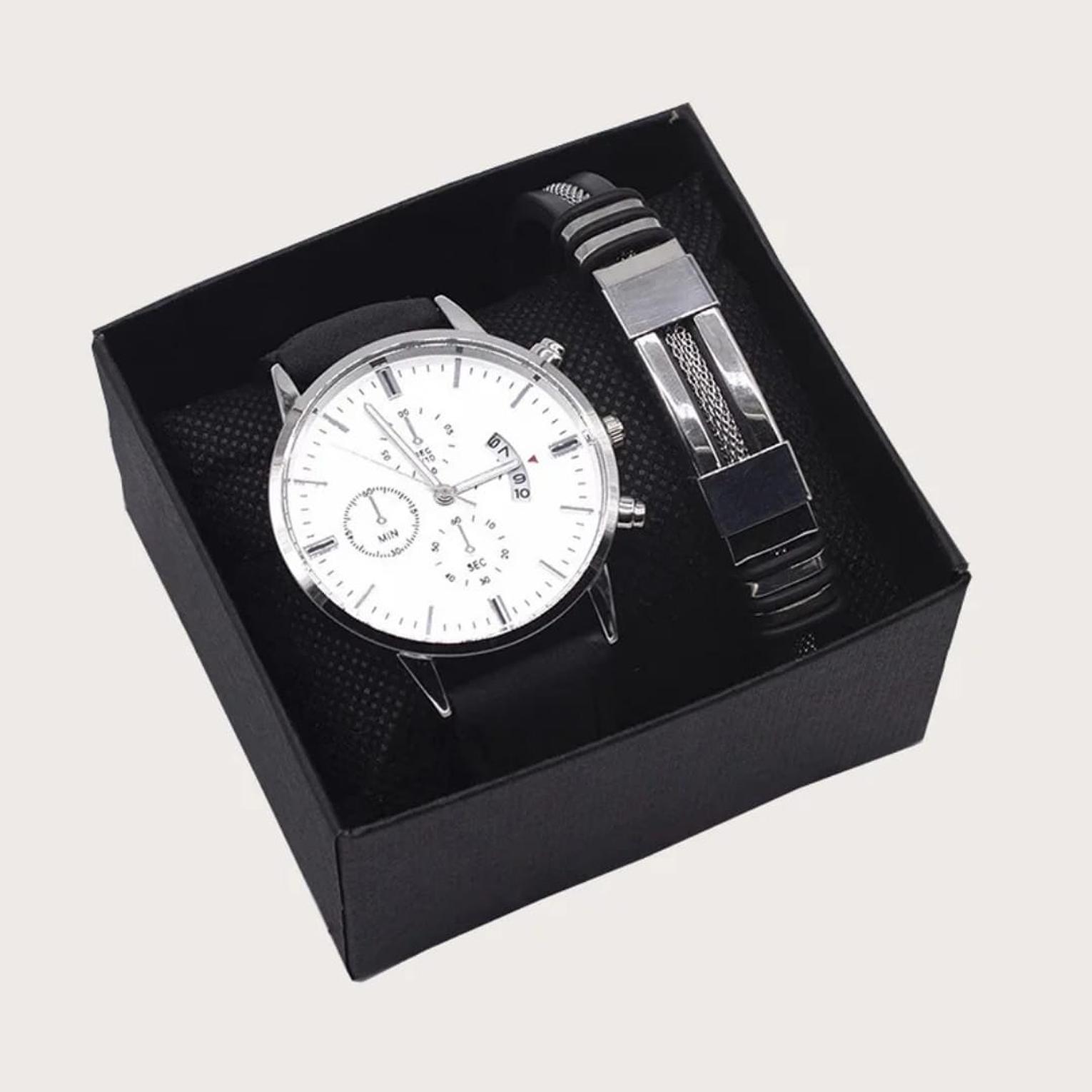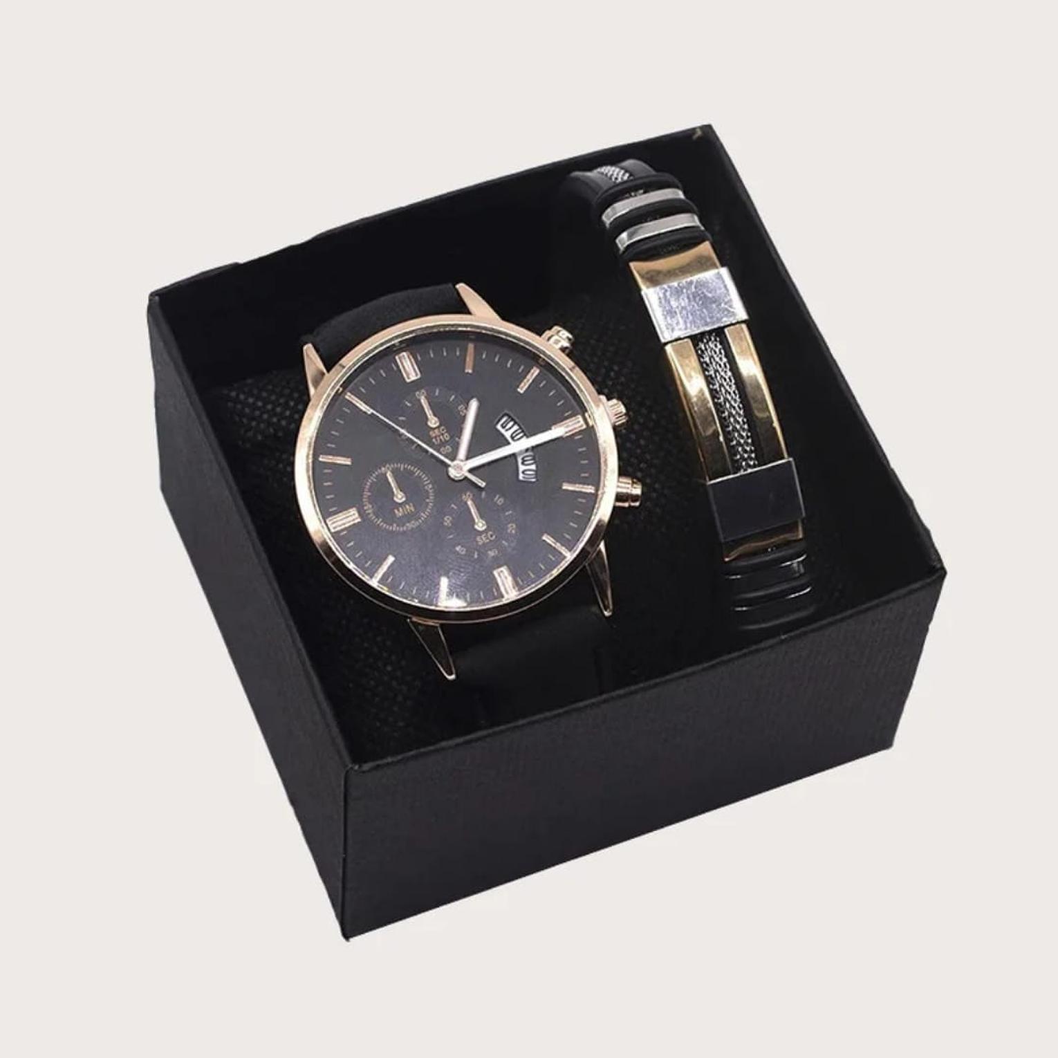 2-Piece Men's Business Luxury Gift Set with Quartz Calendar Watch and Designer Bracelet