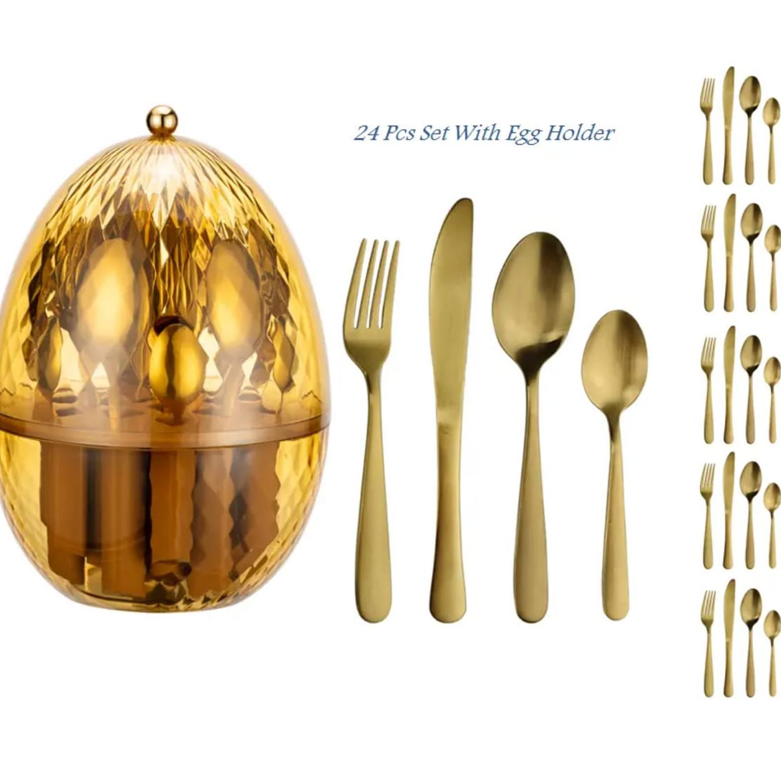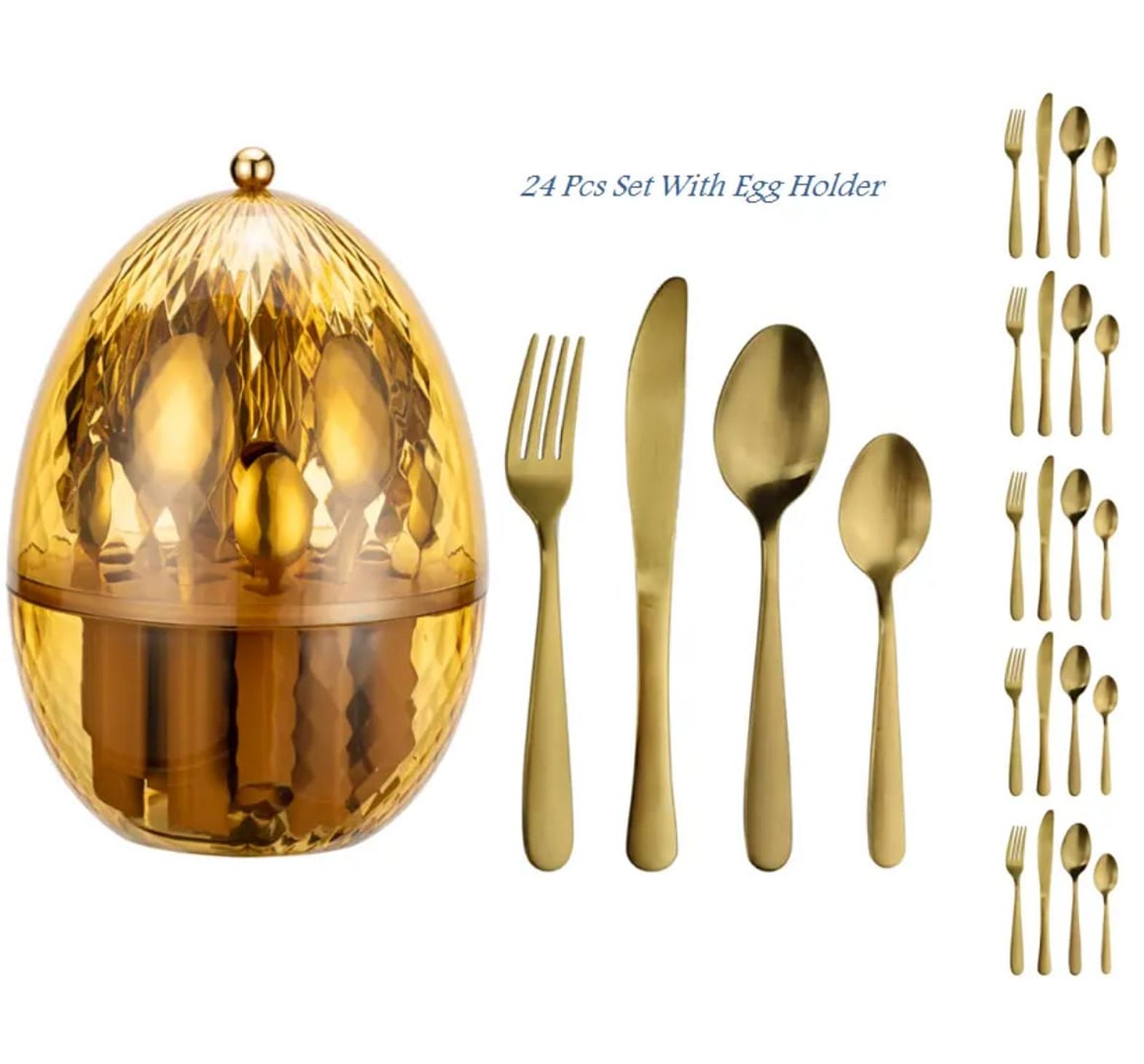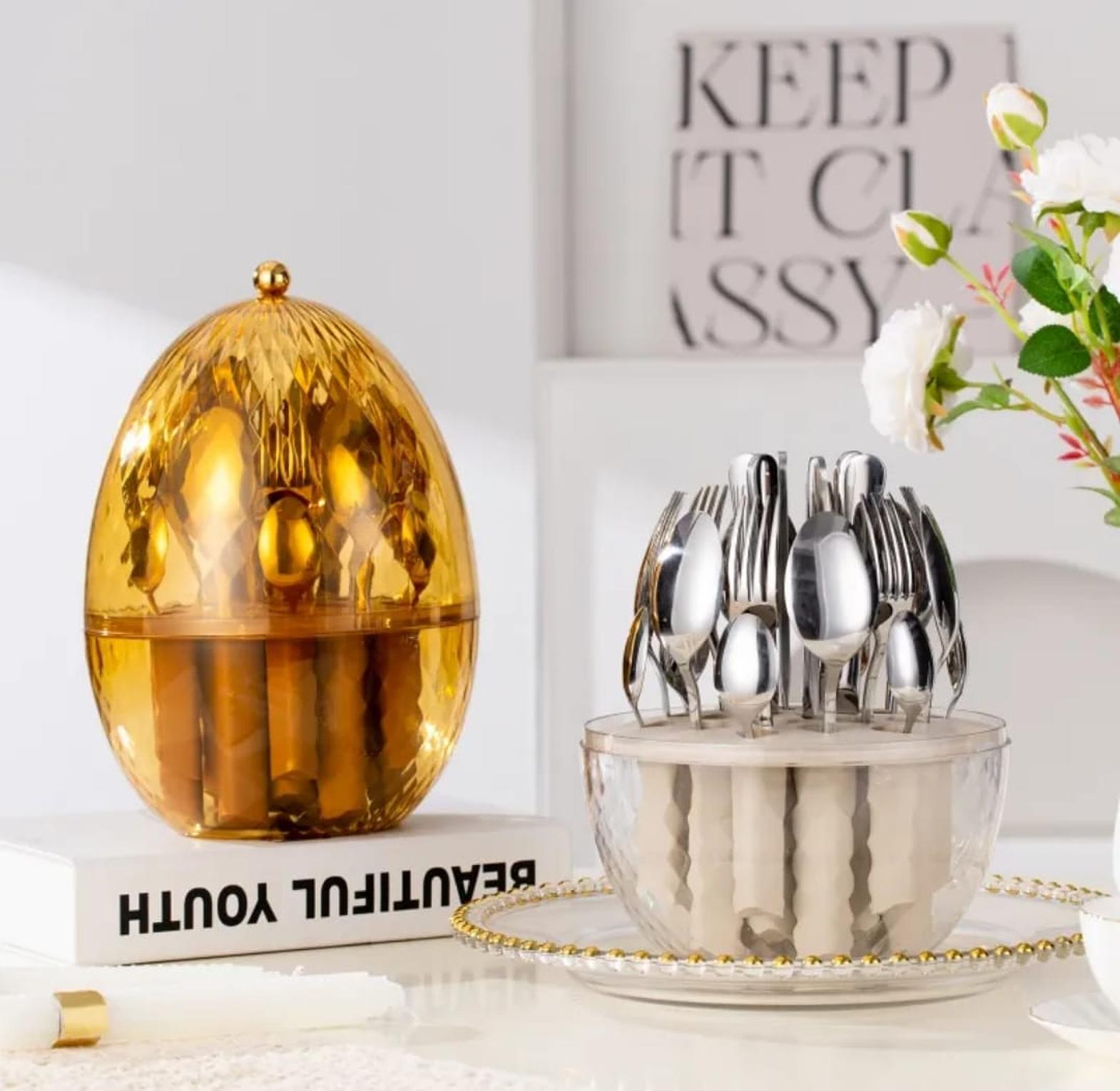 24pcs Cutlery Set with Egg-shaped Organizer