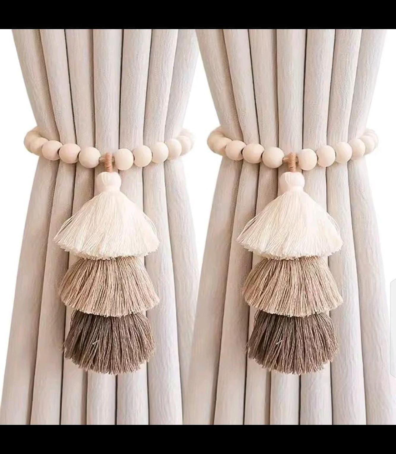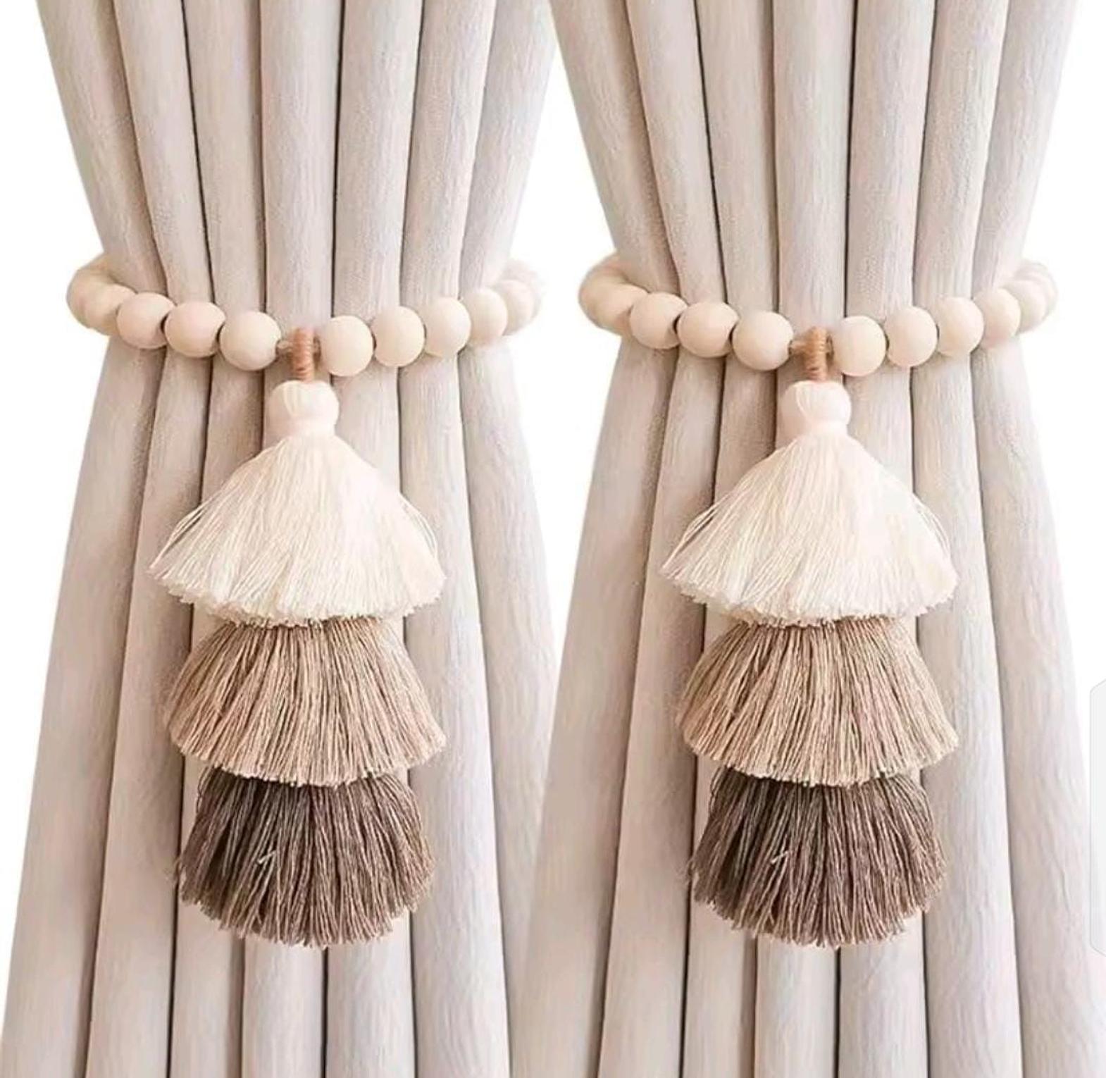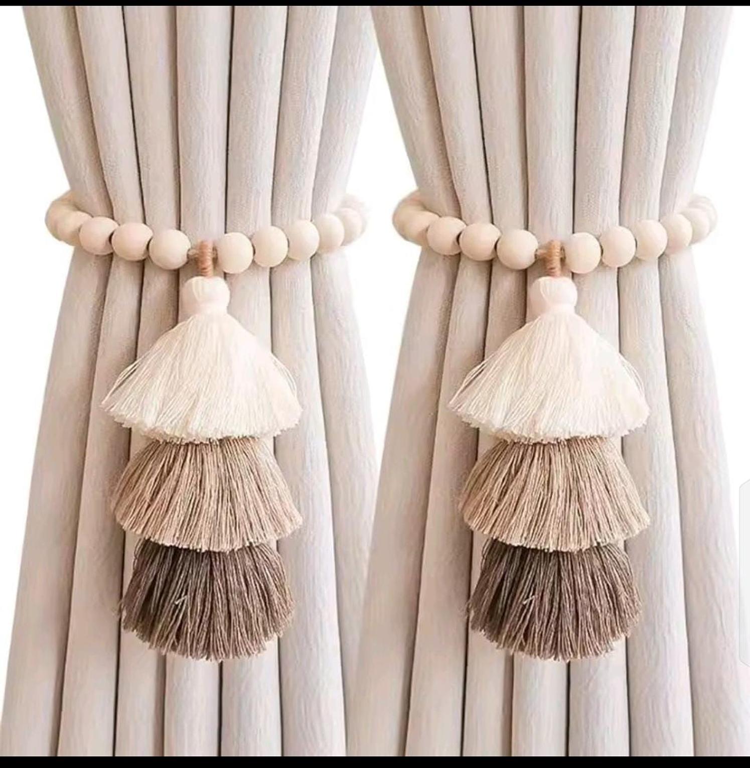*2pc Strong Magnet Curtain Ties Elastic Rope Curtain Ties Bohemian Style Curtain Ties with Wooden Bead