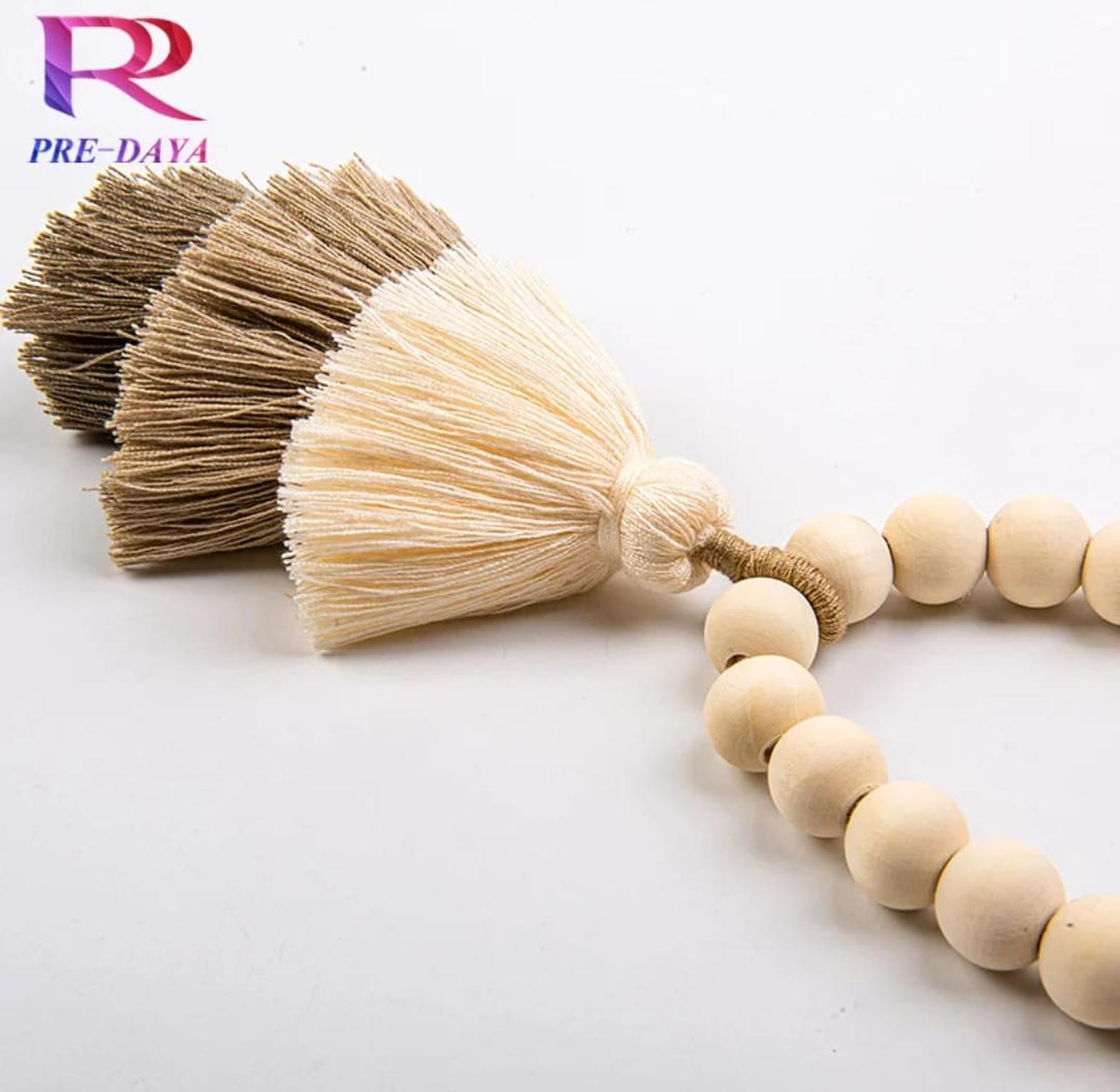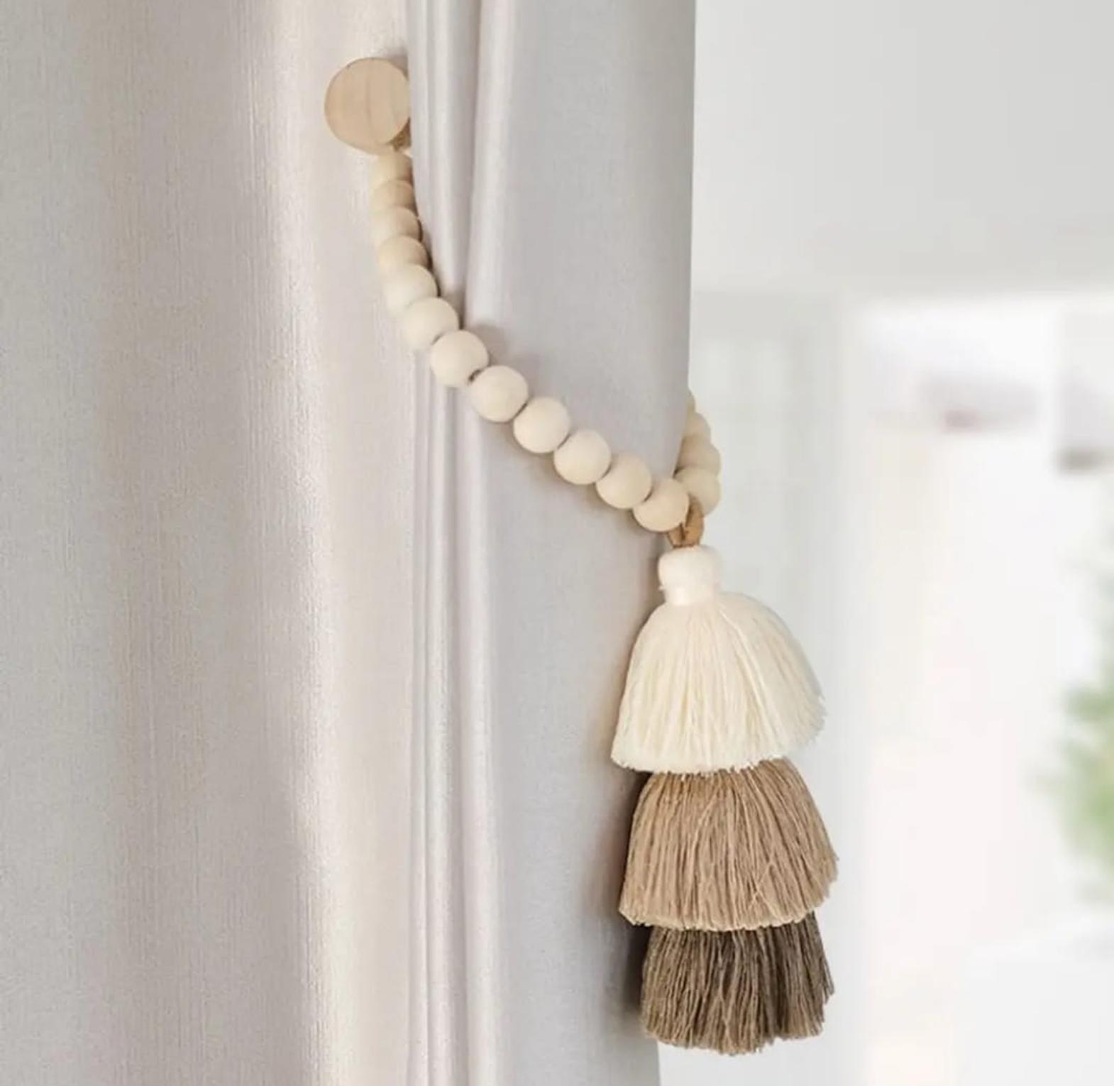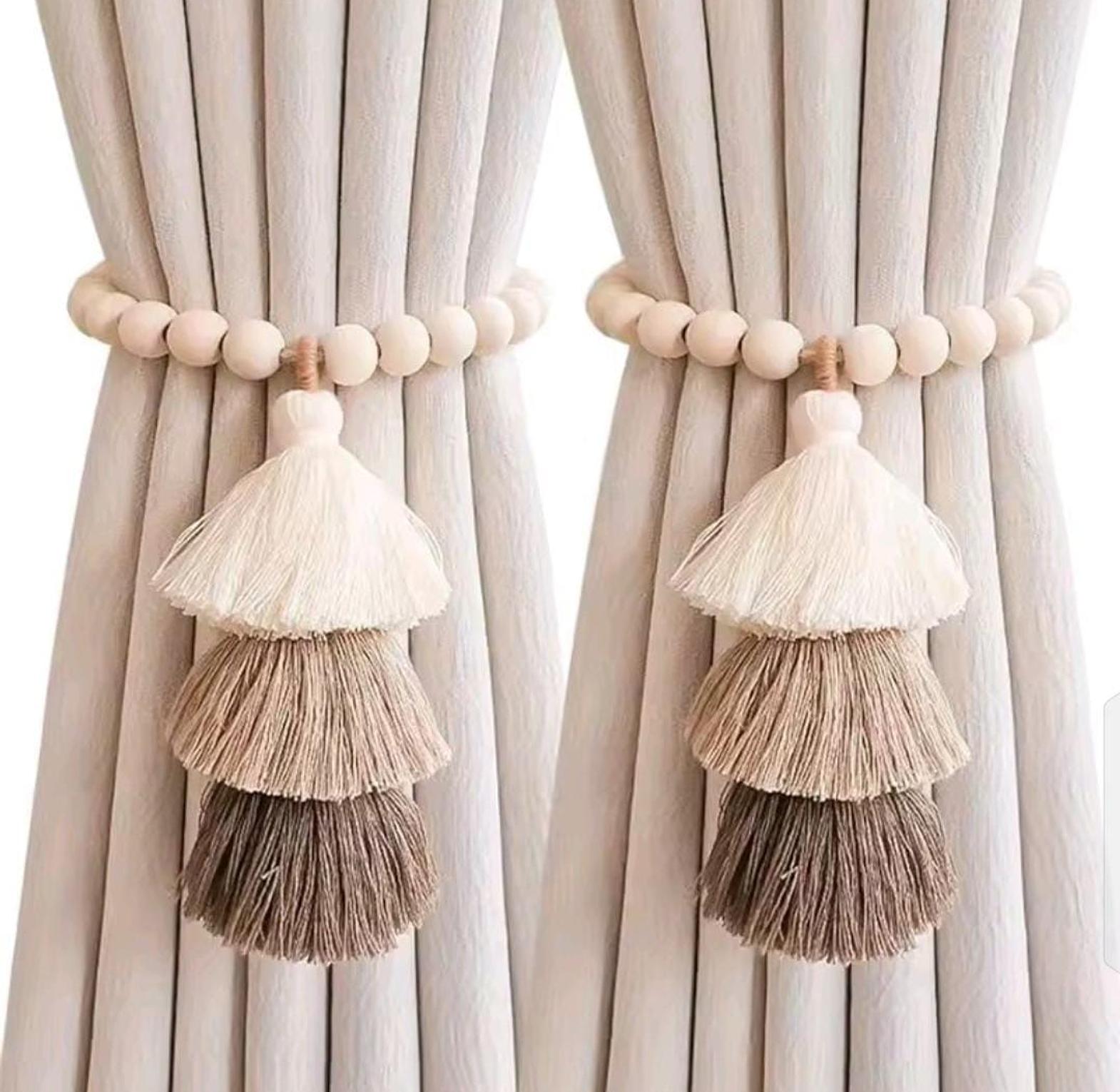 *2pc Strong Magnet Curtain Ties Elastic Rope Curtain Ties Bohemian Style Curtain Ties with Wooden Bead