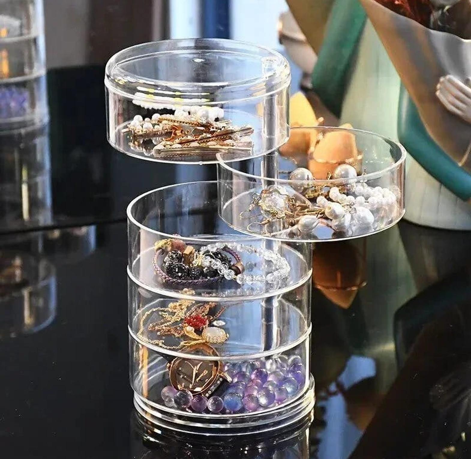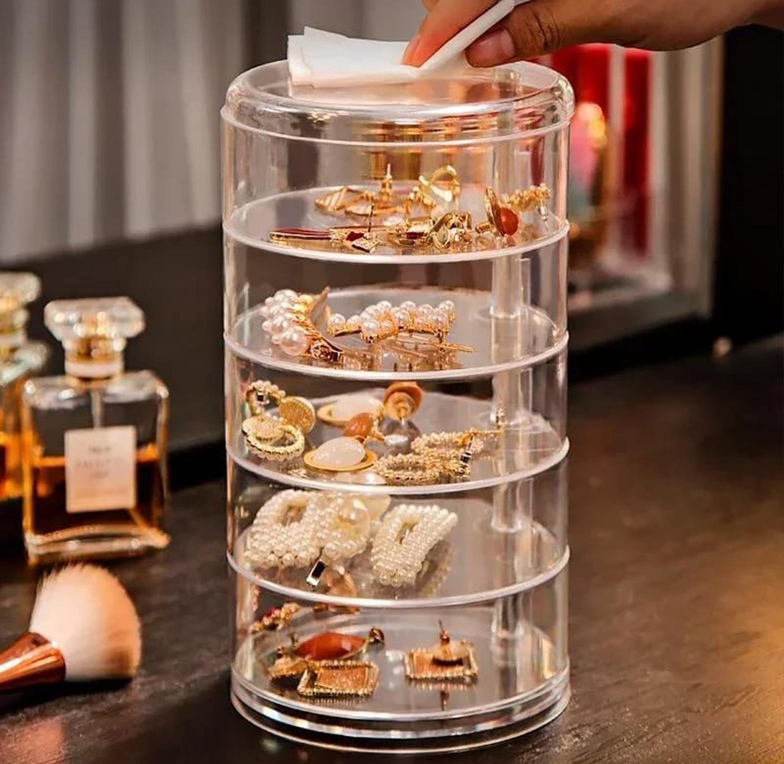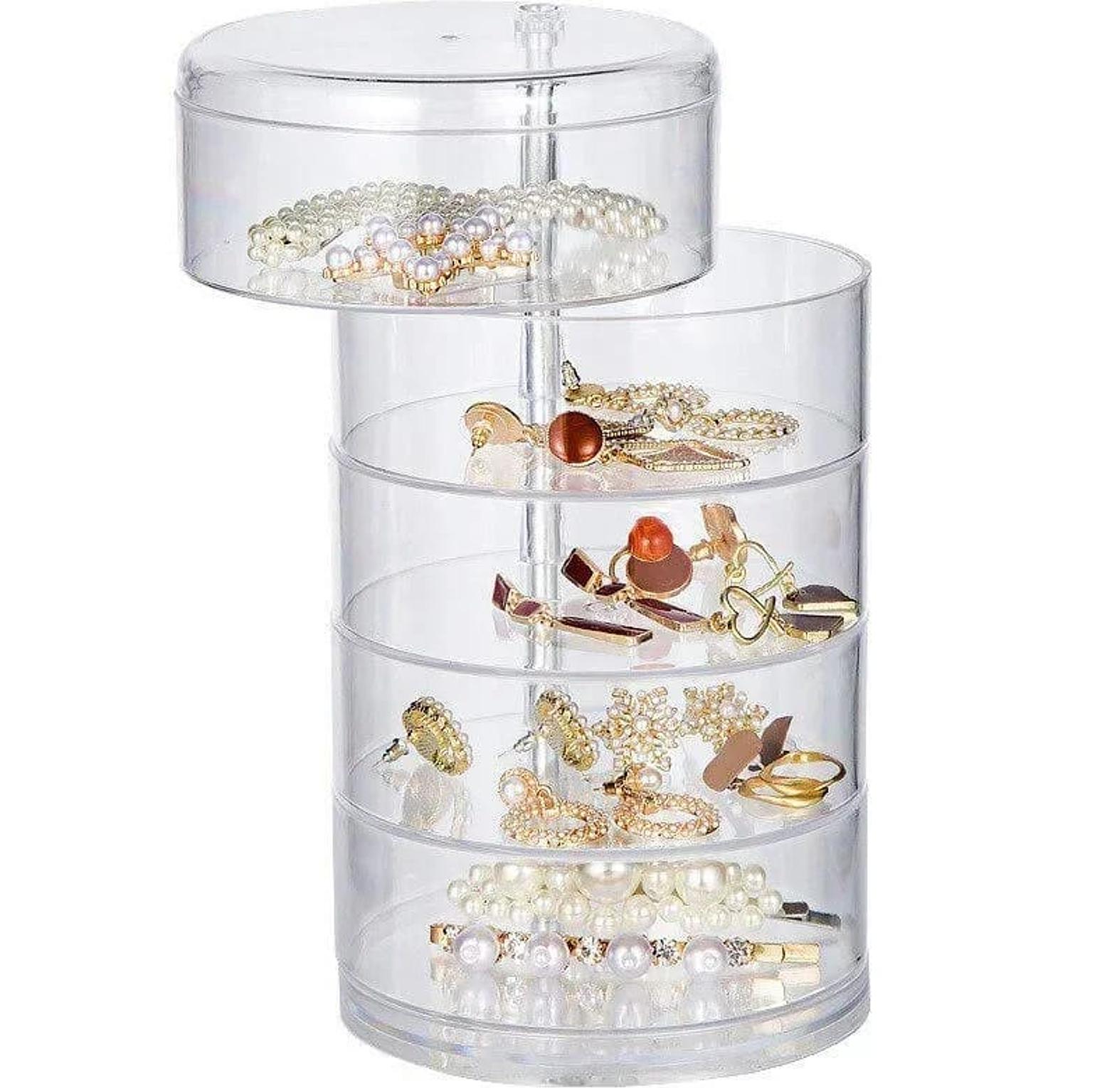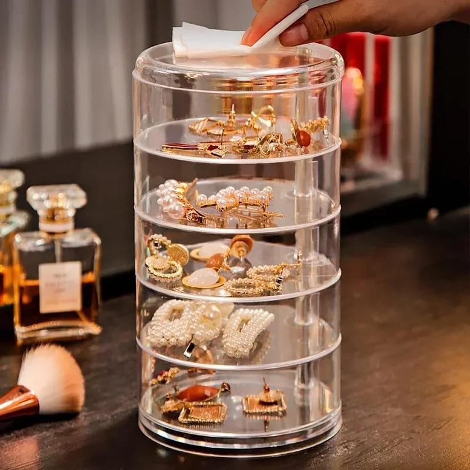 5 Layer Multifunction Rotatable Jewelry Storage Box Cylinder Transparent Hairpin Organizer Earrings Dressing Table Display