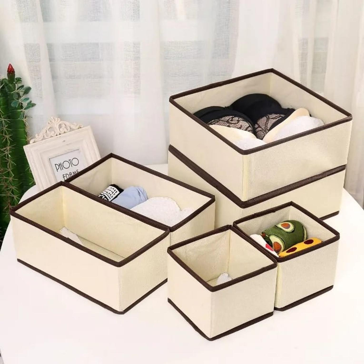 6pcs/1set Underwear Storage Box Foldable Non-woven Storage Box Six-piece Set Underwear Bra Socks Drawer Storage Finishing Box