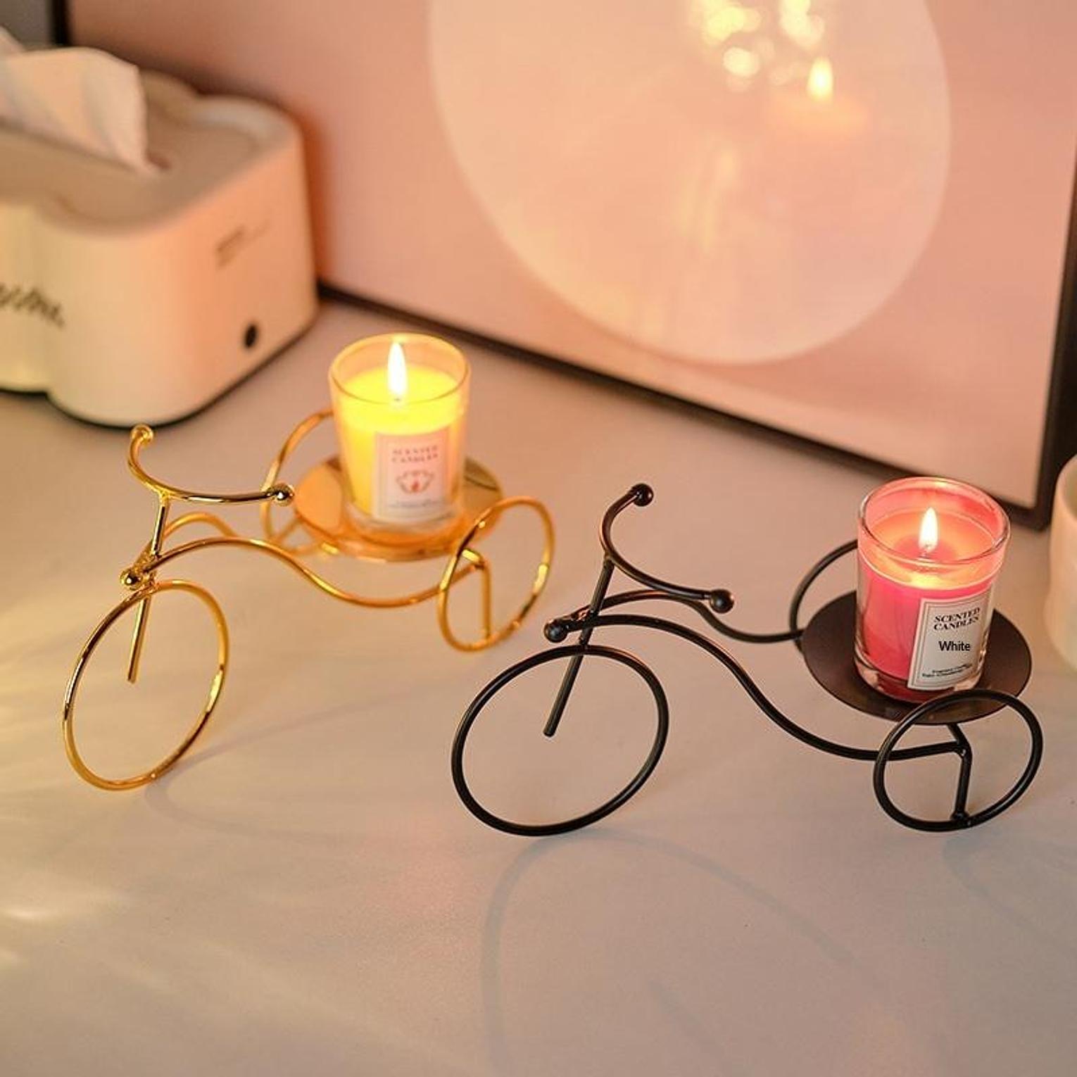 This tricycle candle holder is crafted with a luxurious golden finish that enhances any interior setting.