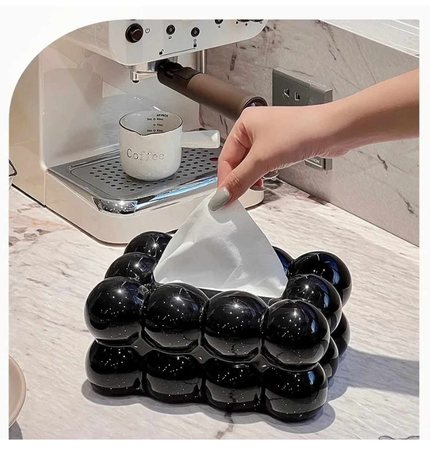Add a touch of contemporary elegance to your home with this creative bubble-design tissue box cover, featuring a high-gloss finish and a unique spherical silhouette. This artistic dispenser is a perfect functional decor piece for modern kitchens, living rooms, or vanities, turning an everyday essential into a luxurious accessory.