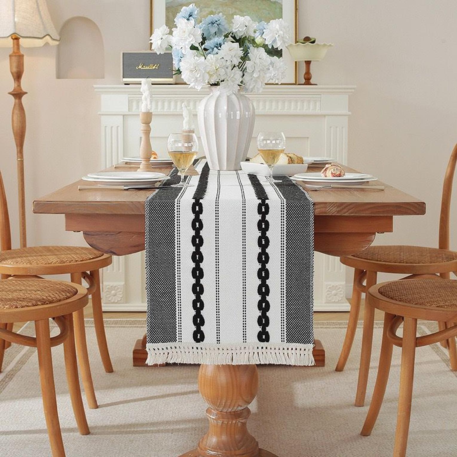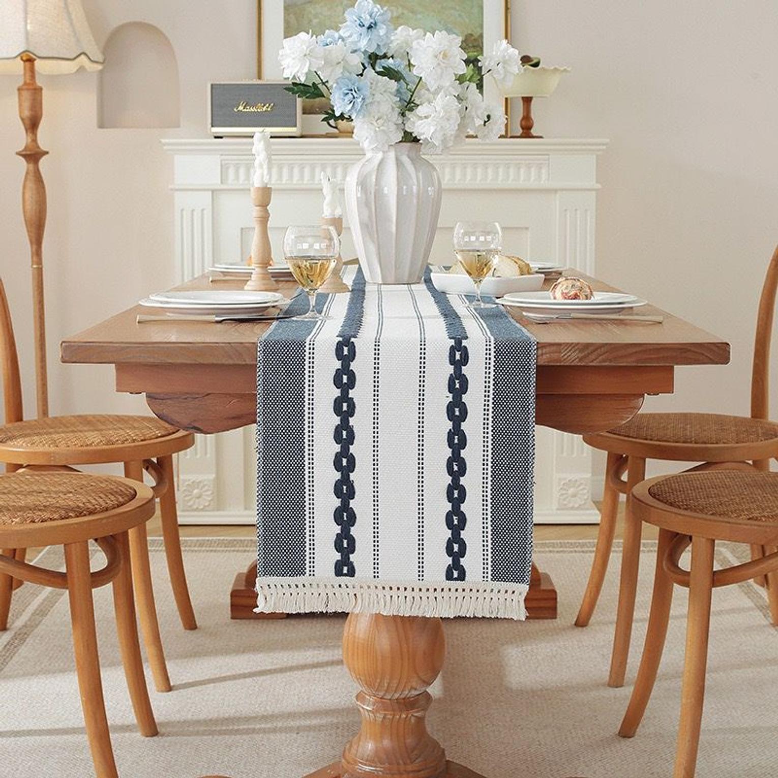 Modern Simple Tassel Cotton Linen Table Runner
