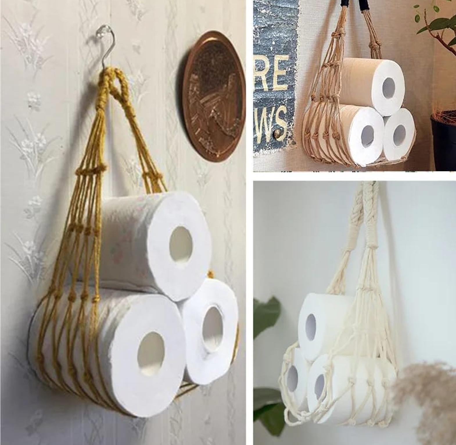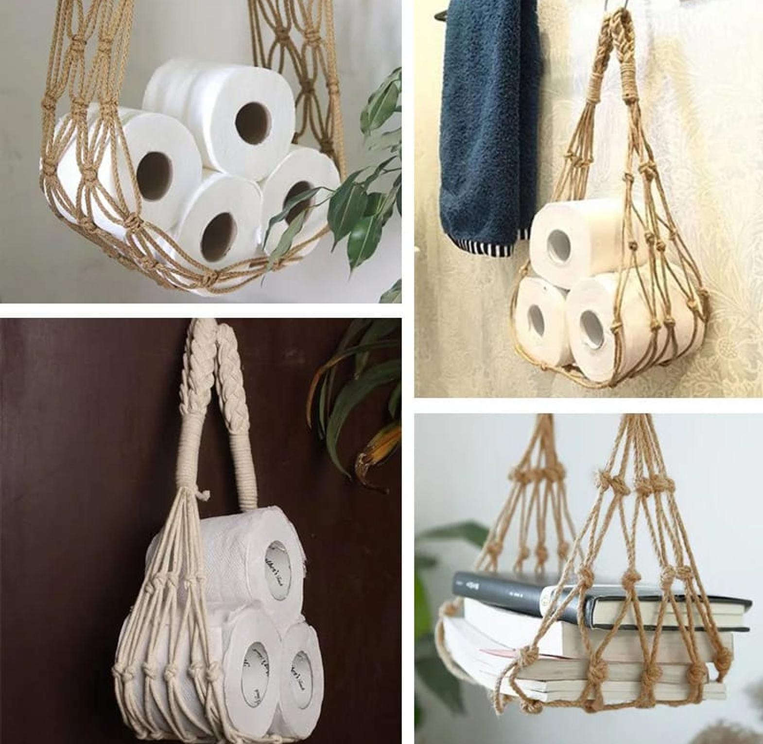 Nordic Style Hanging Cotton Rope Roll Paper Holder Toilet Paper Magazine Home Hotel Storage Hanging Pocket Rack Space-Saving