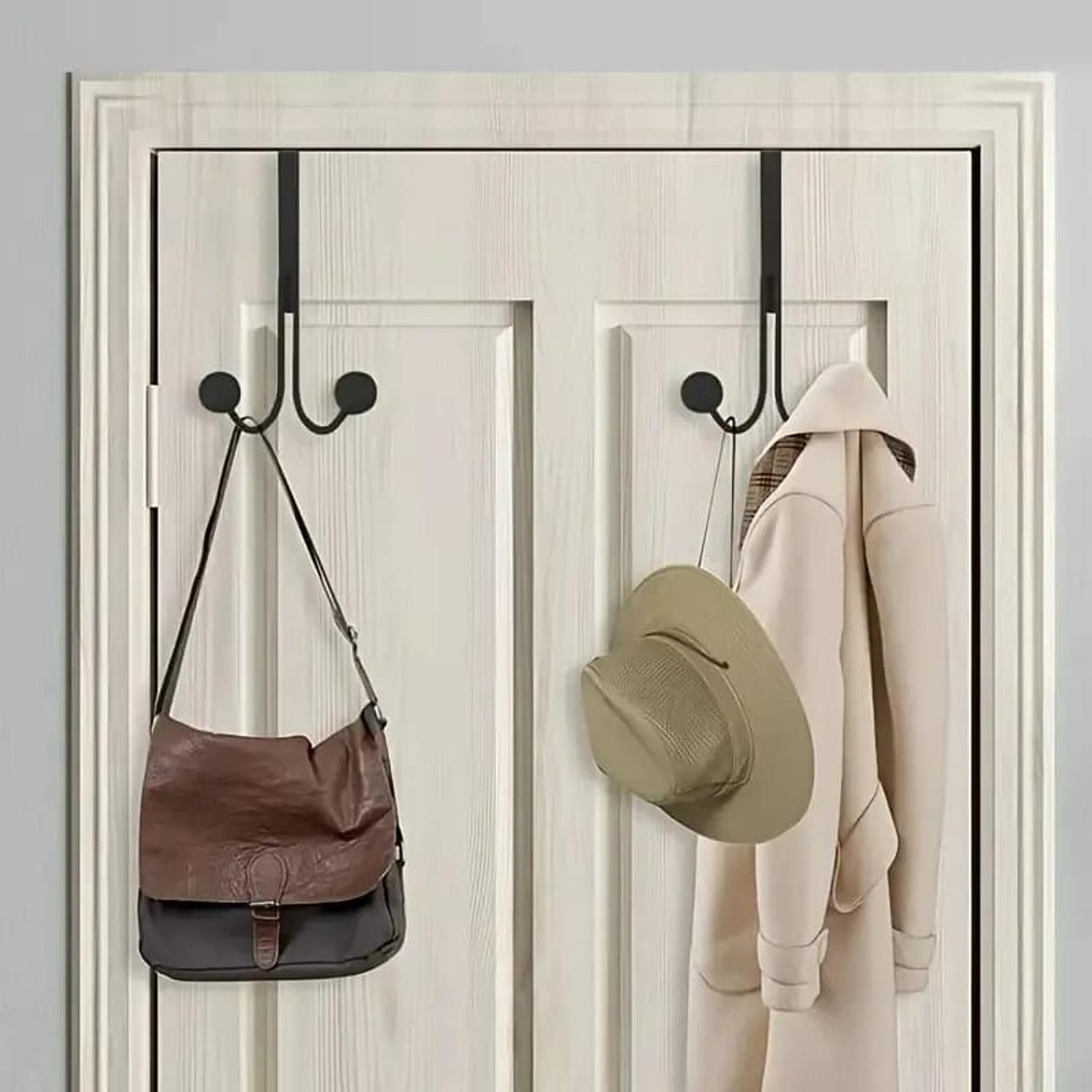 Over The Door Double Hanger Hooks Free Punching For Hanging Hats Bags Holder Tie Scarf Key Hook Clothes Coats Rack Towel Shelf