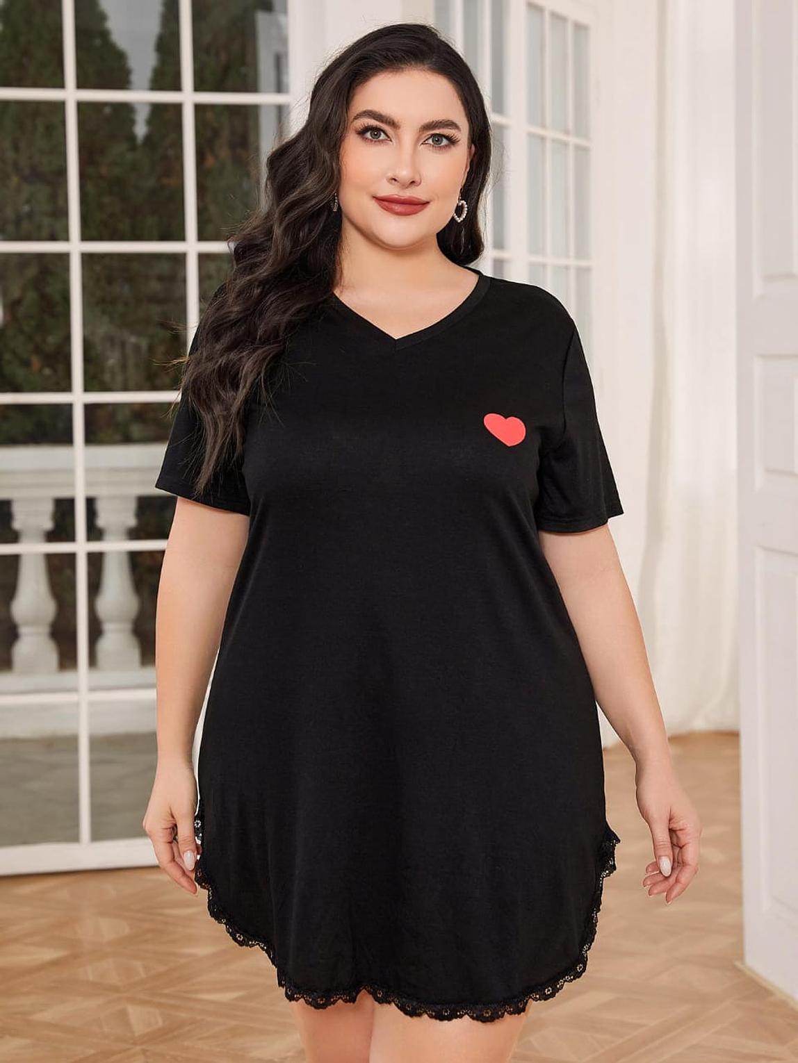 Plus Size Women's Nightgown Lace Hem Sleepwear V