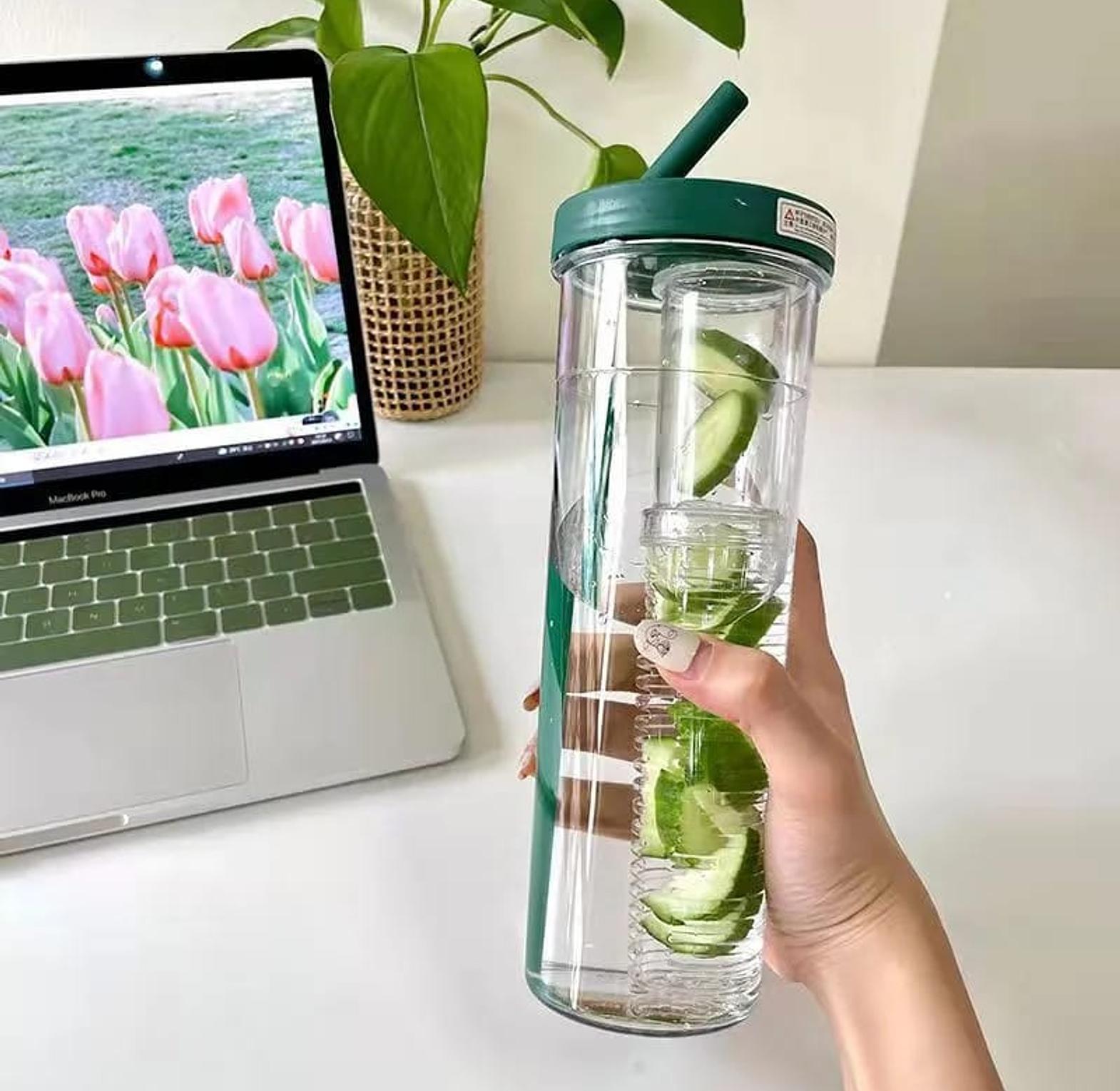 • Integrated Fruit Infusion Filter: Features a dedicated internal strainer compartment that allows you to add blueberries, lemon slices, or rosebuds to infuse your water without debris.