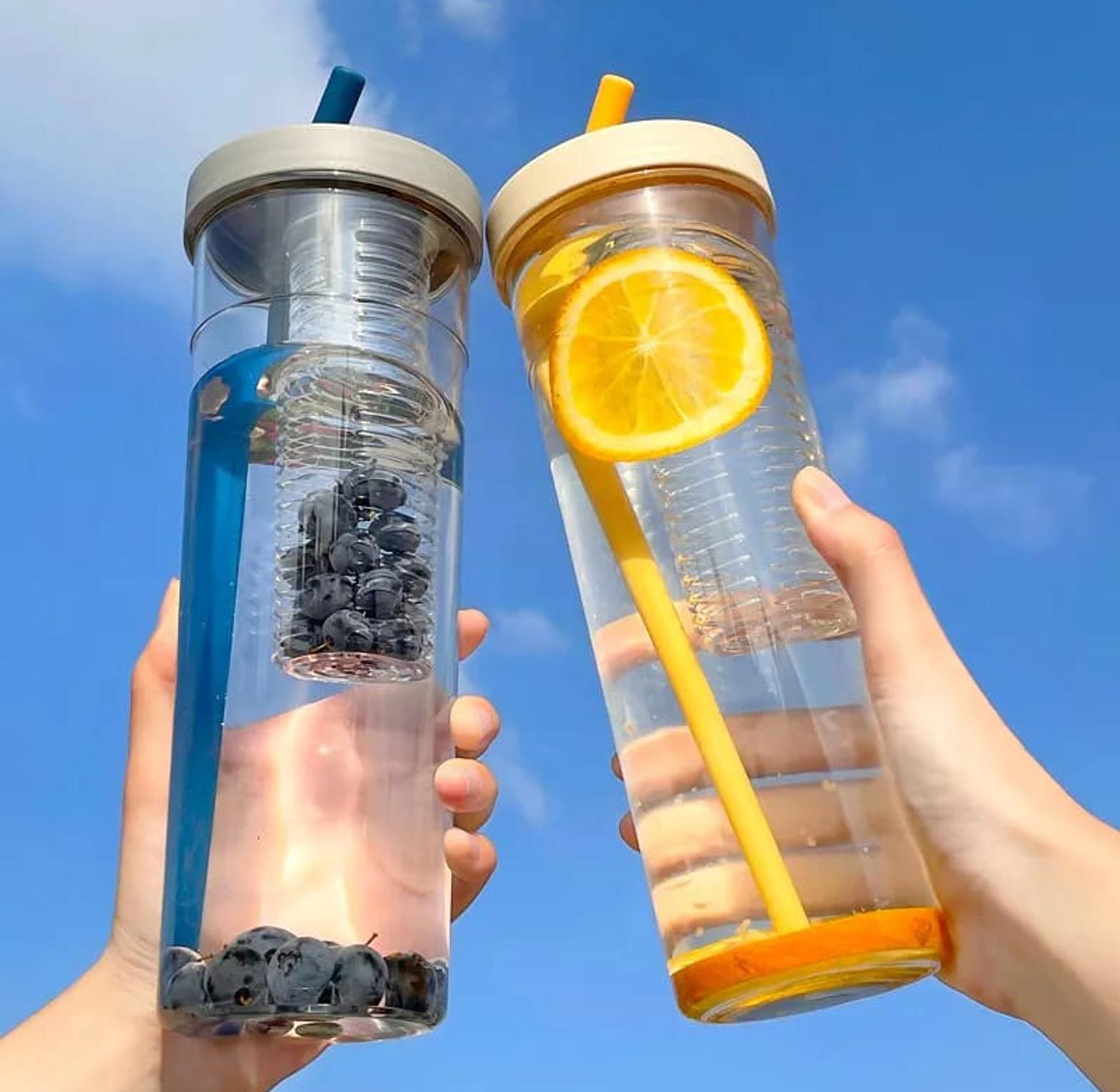 Portable 700ml Fruit Infuser Water Bottle with Foldable Straw and Built-in Filter