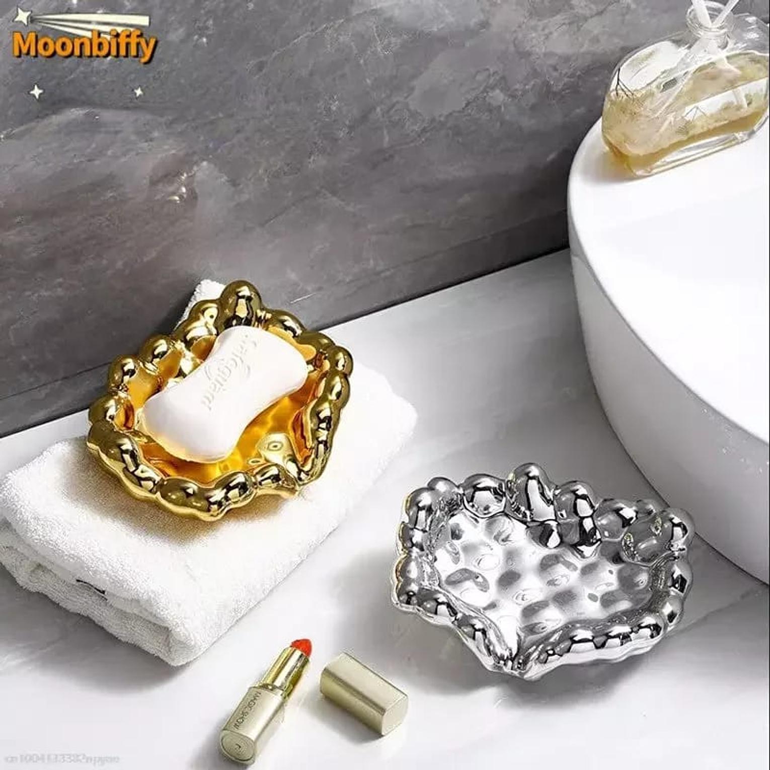 Quick Drain Golden/Silver Color Soap Dish Washbasin Countertop Storage Tray Washroom Accessories