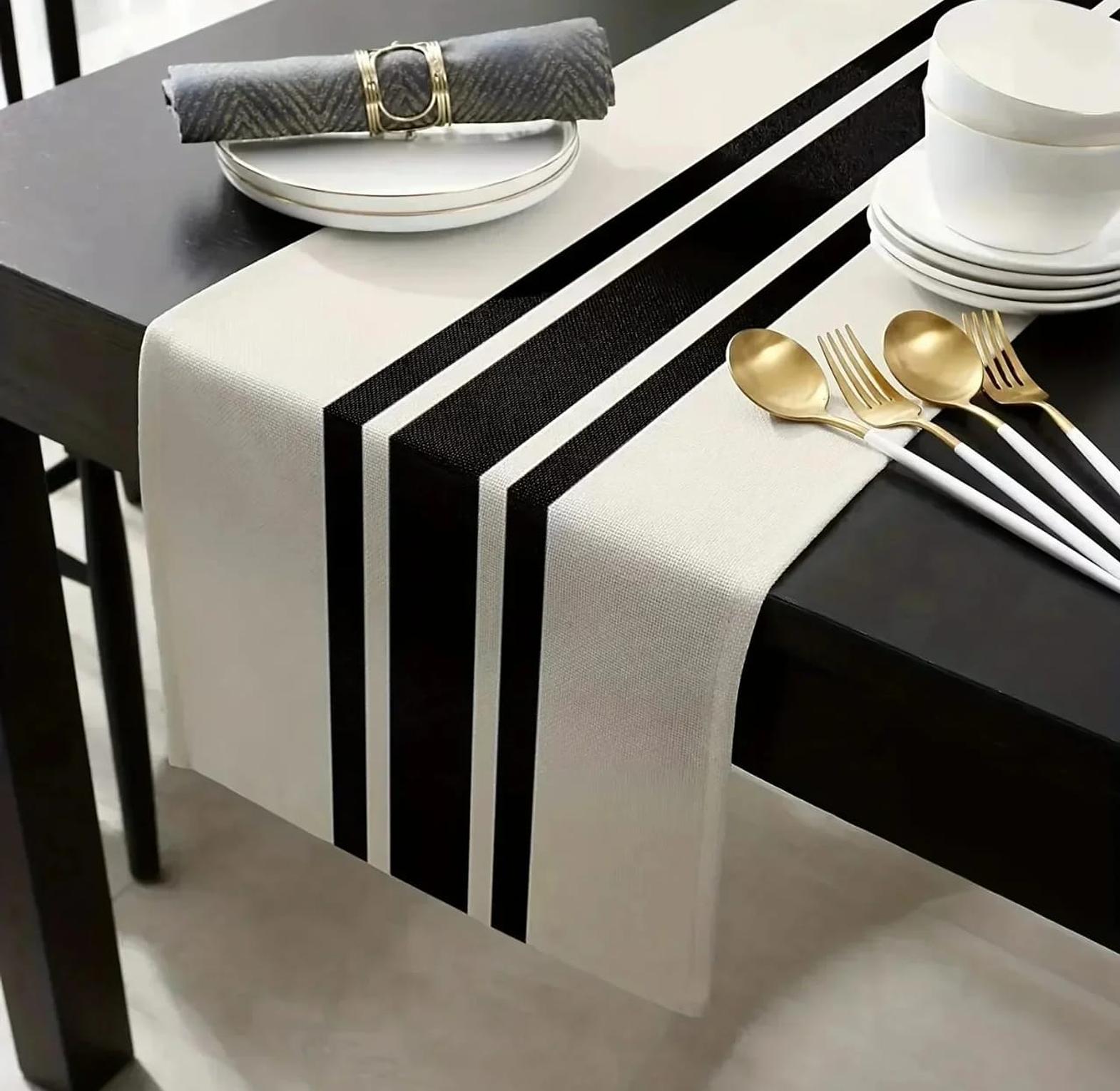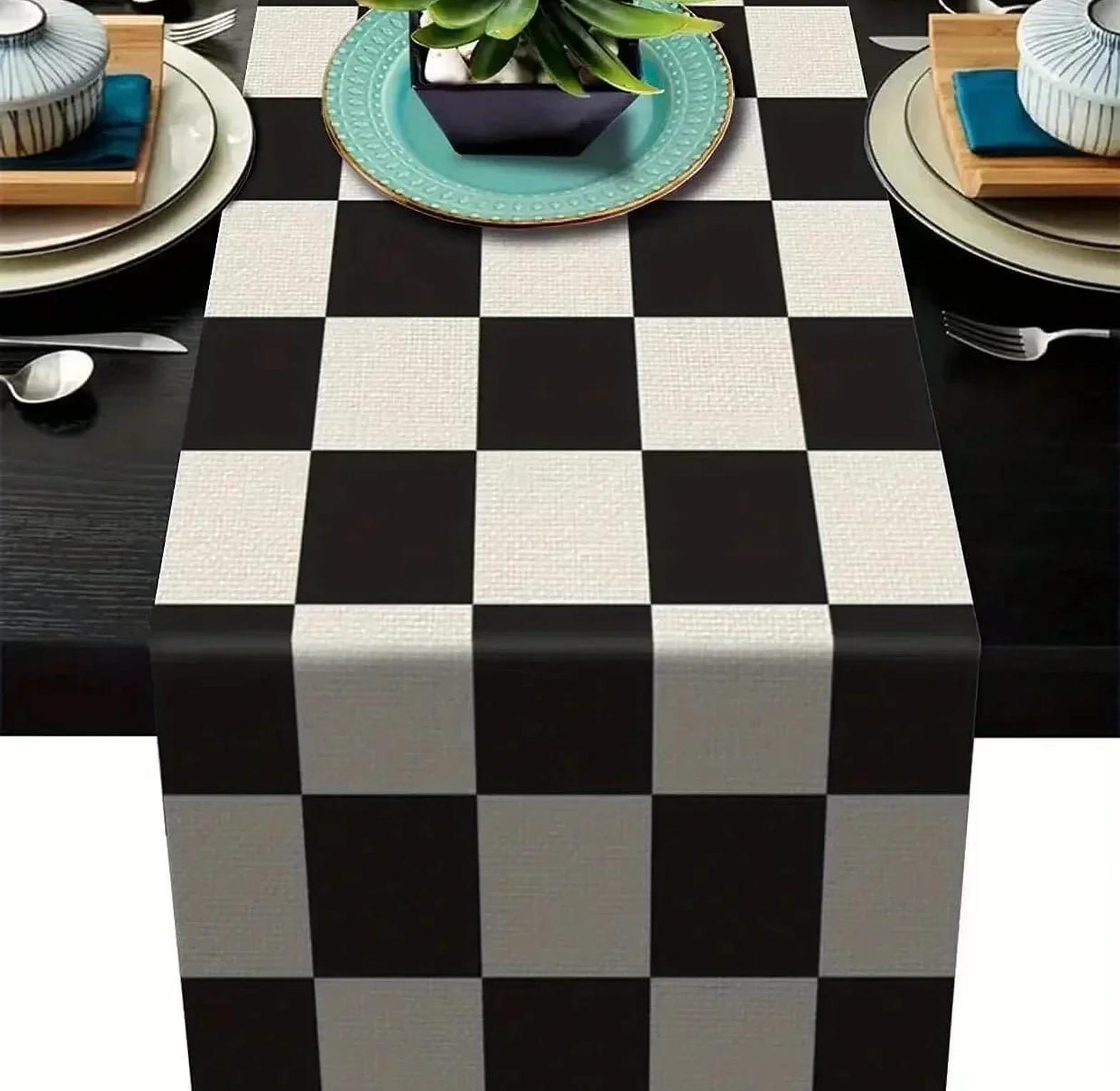 Geometric Stripe Linen Table Runner Modern Simple Black And White Plaid Classic Vintage Table Cloth Home Decoration
