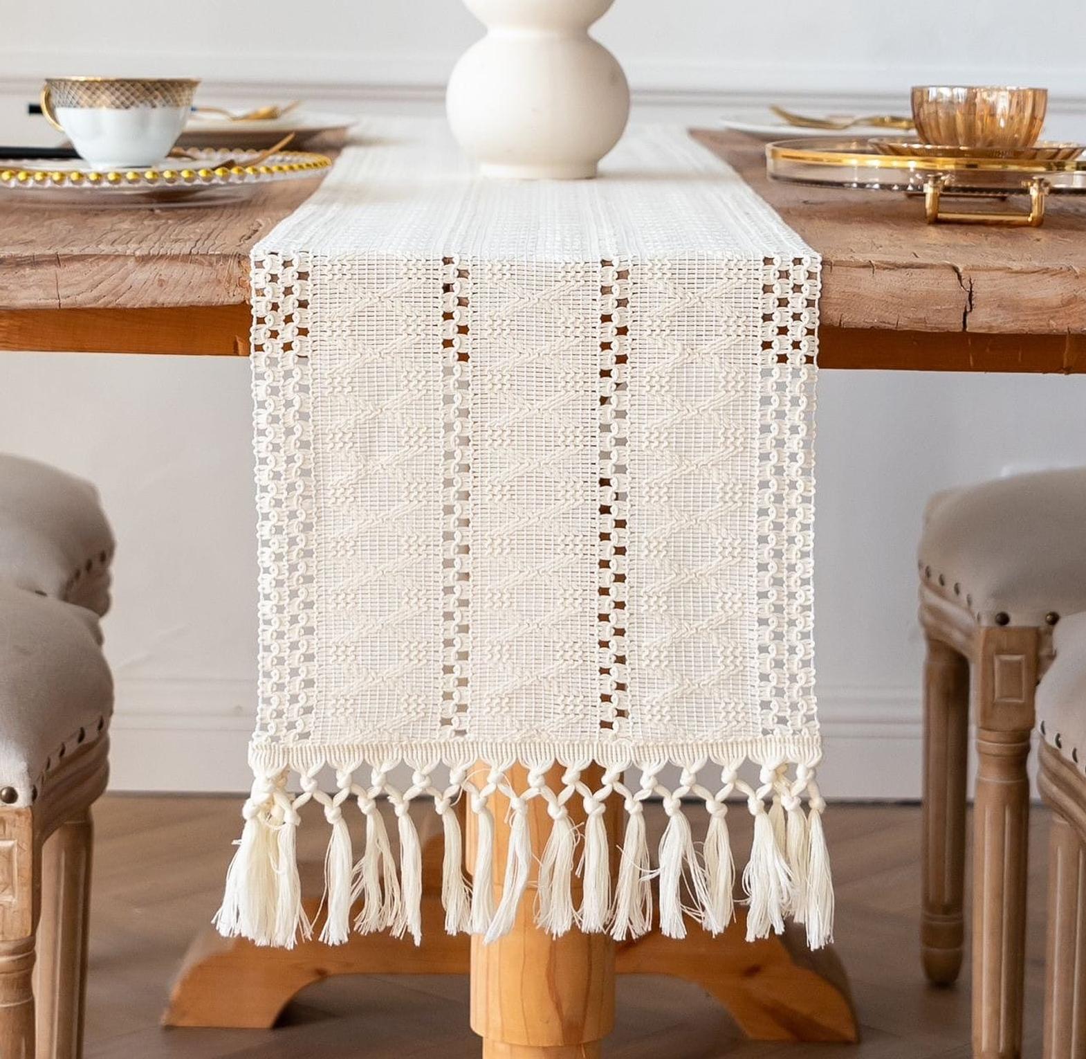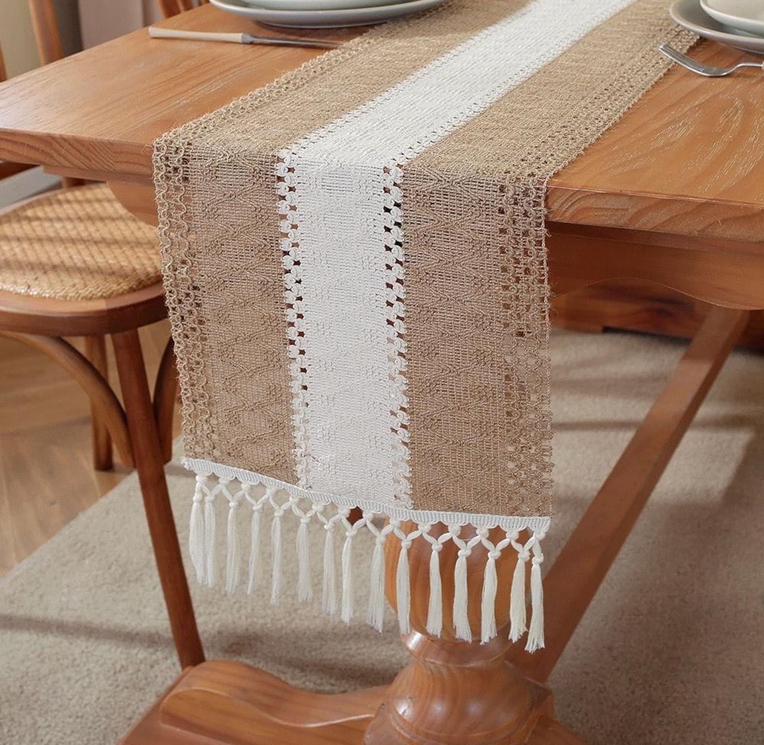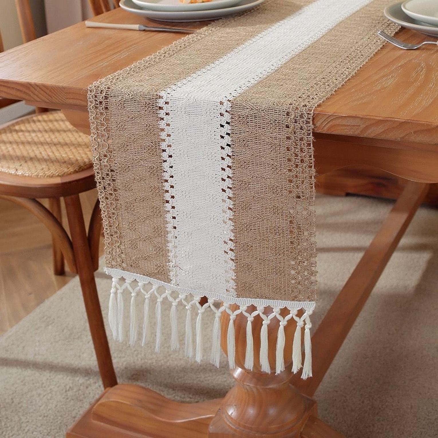 Tassels Bohemian Style Table Runner Farmhouse Linen Table Tablecloth