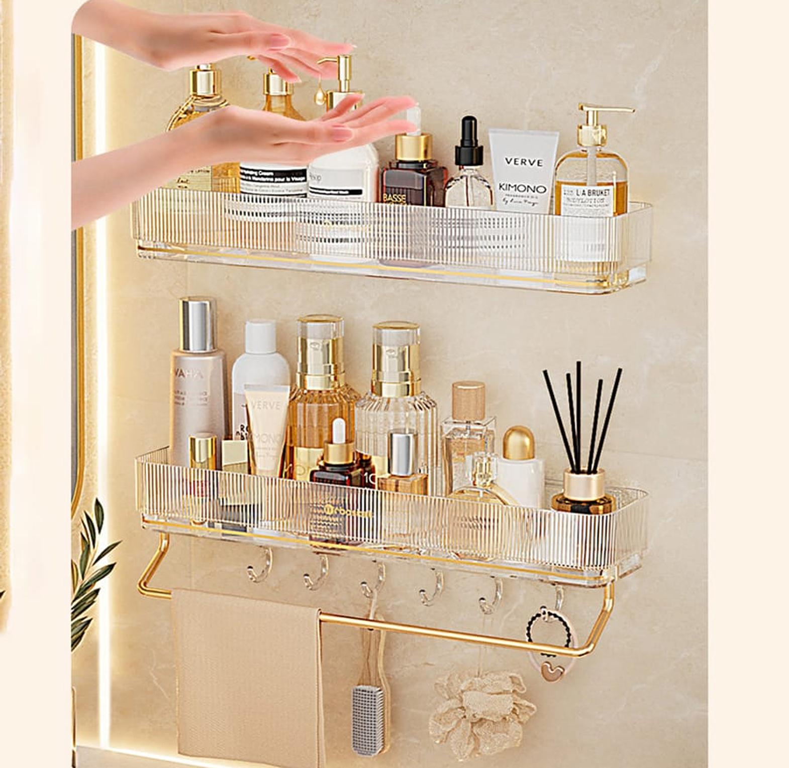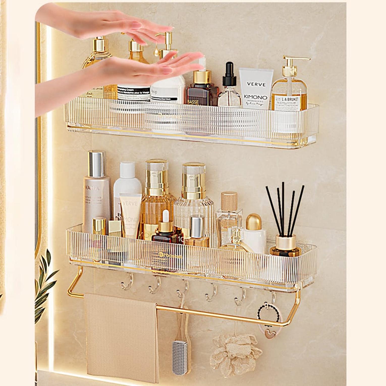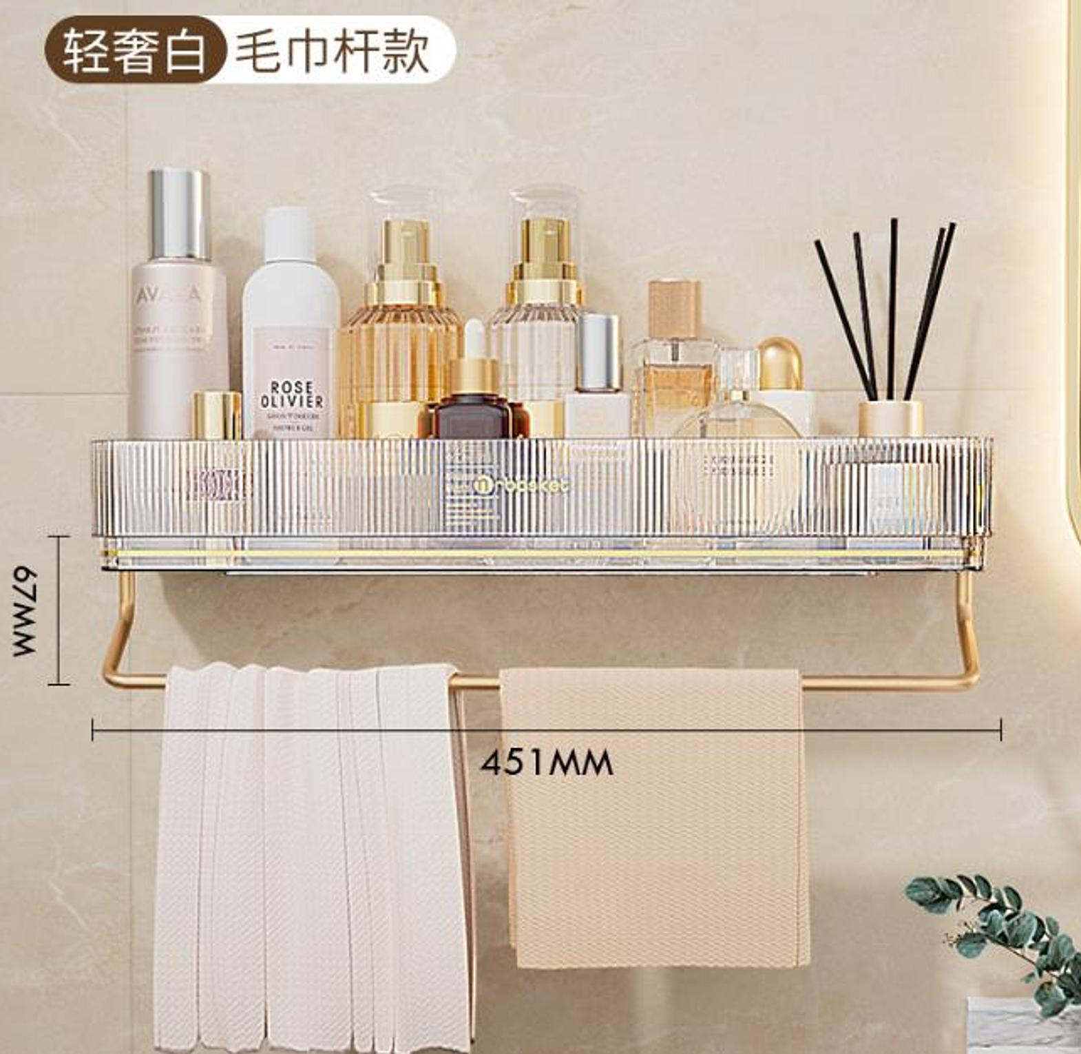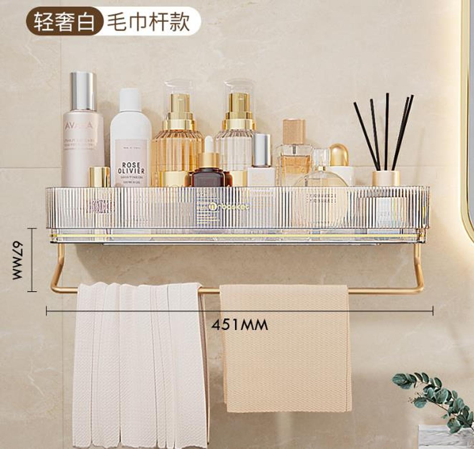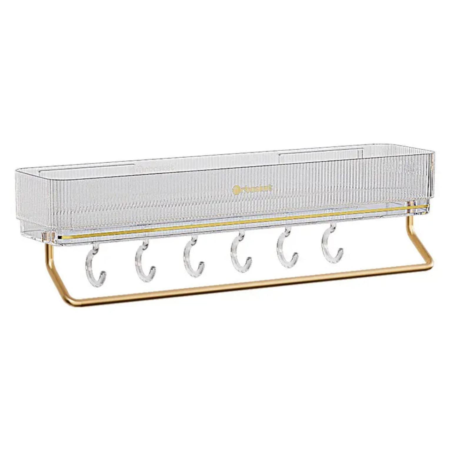 Wall Mounted Bathroom Wall Shelf with Towel Bar and 6 Hooks