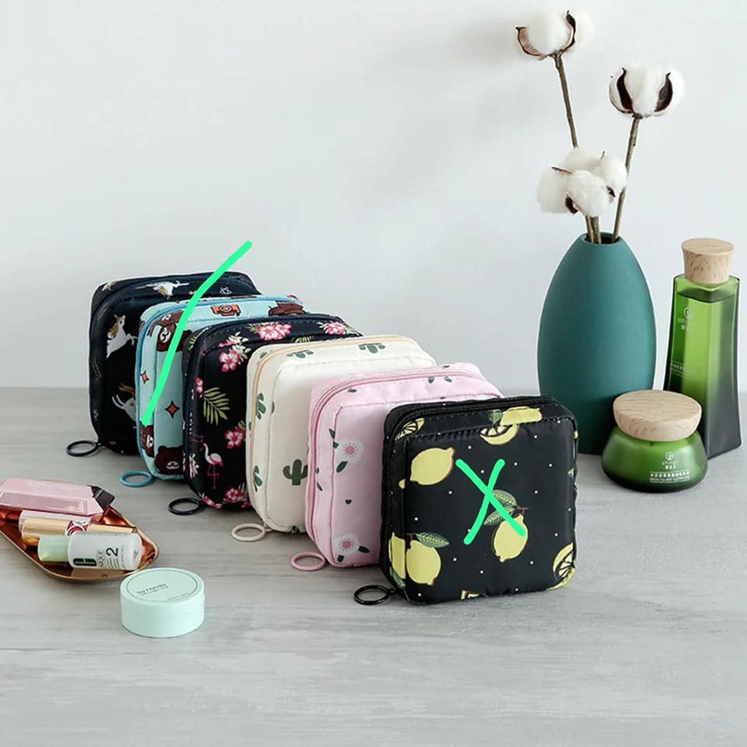 Keep your personal essentials discreet and organized with this portable sanitary pad storage bag, featuring a variety of charming prints like lemons, cacti, and floral patterns. This compact, zippered pouch is designed to securely hold tampons, hygiene pads, or small makeup items, making it an essential hygiene accessory for school, work, or travel.